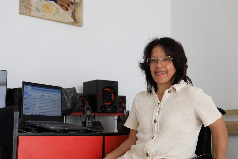 La emprendedora Olga Restrepo, de la comuna 13, se formó en Marketing digital y redes sociales en 2022. Ahora, con los conocimientos adquiridos, espera crecer su negocio.