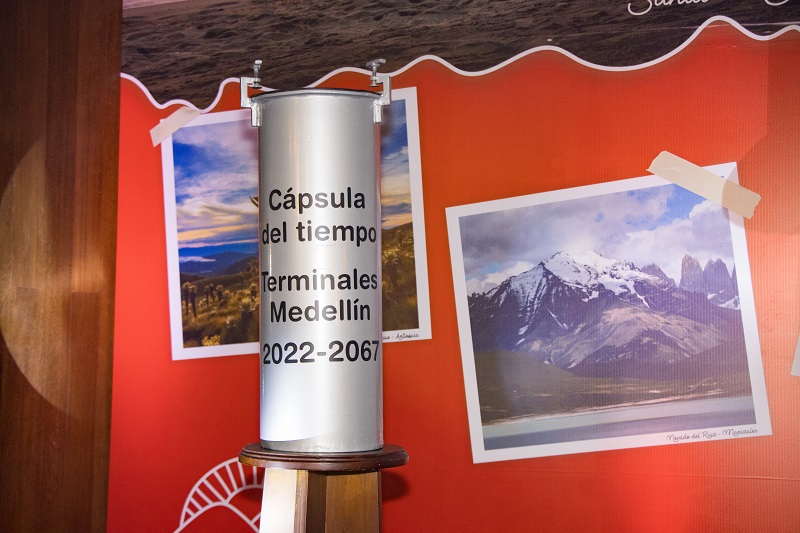 De forma simbólica, Terminales Medellín dejará una cápsula del tiempo, hasta 2067, para salvaguardar la memoria de la entidad en sus 45 años de constitución como sociedad y convertirse en una historia para contar en el futuro. Dicha cápsula estará en la zona centro de la Terminal del Norte y conservará una carta del alcalde Daniel Quintero (para el futuro alcalde o alcaldesa), otra del gerente de la institución, Richard Serna Maya, un tiquete hacia Belmira, un bus a escala como los que hoy salen y llegan desde terminales, plano de la estación caribe metro de la 80, postales de recuerdo y la foto de Alan, mascota adoptada por Terminales Medellín en La Perla, en 2021.